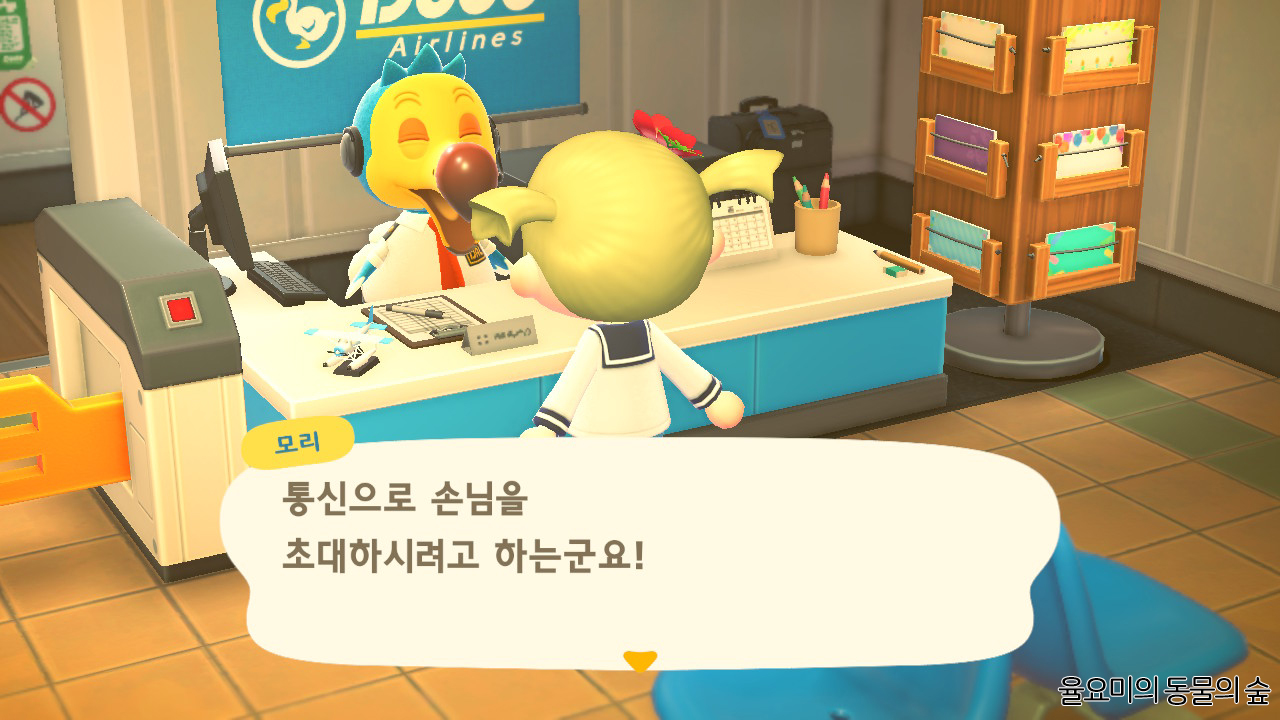상대방이 자기 섬으로 돌아가고 나면 모리와 대화하여 탑승구를 닫아주면 된다.( - 버튼을 이용하여 접속 종료를 하게 되면 탑승구도 자동으로 닫아준다.)