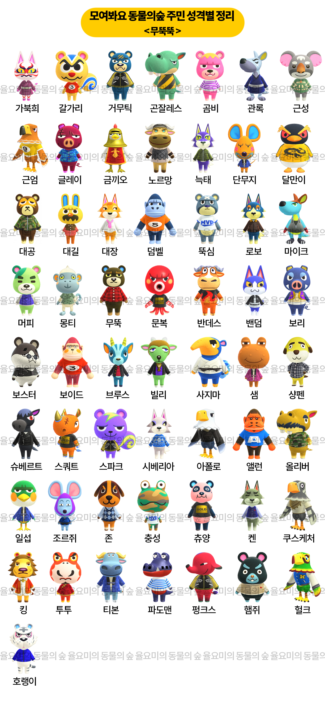모여봐요 동물의 숲 무뚝뚝 성격 주민 리스트