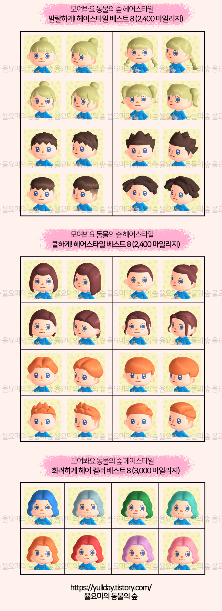 모여봐요 동물의 숲 _ 모동숲 헤어스타일 / 헤어 컬러 총 정리 (발랄하게, 쿨하게, 화려하게) 본문