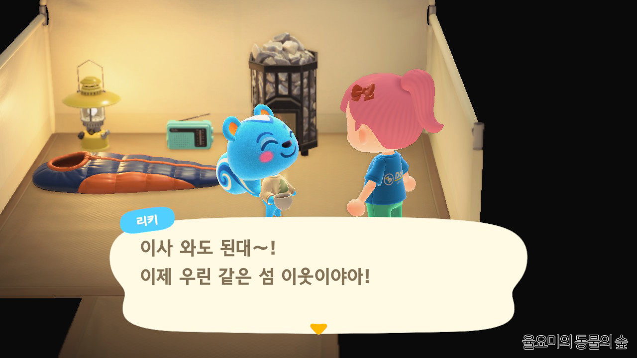 아미보로 주민을 부르게 되면 마일섬을 돌거나 캠핑장에 오는 주민을 기다리지 않아도 되는 장점이 있으나 기대감이나 설렘이 조금은 반감되는 느낌이다. (리키는 사조하꼬섬에서 잘 지내다가 나의 부텐도 섬으로 다시 이사를 보내게 되었다.)