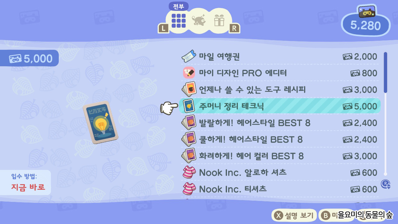 모동숲에서 주머니를 늘리는 방법은 너굴 포트에서 주머니 정리 테크닉이라는 아이템을 사면 빠르게 창을 늘릴 수 있습니다. 너굴 포트에서 너굴 마일 교환으로 들어가면 아이템을 사거나 다양한 레시피를 구할 수 있는데 이 중에서도 '주머니 정리 테크닉'을 구매하시면 됩니다. 이 아이템은 5000마일리지로 구매할 수 있는데 이것저것 퀘스트를 깨다 보면 마일리지도 금방 모이므로 쉽게 구매할 수 있습니다.