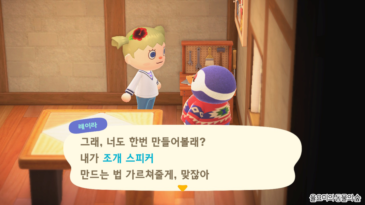 DIY 하고 있는 주민을 찾아가 레시피를 받기.