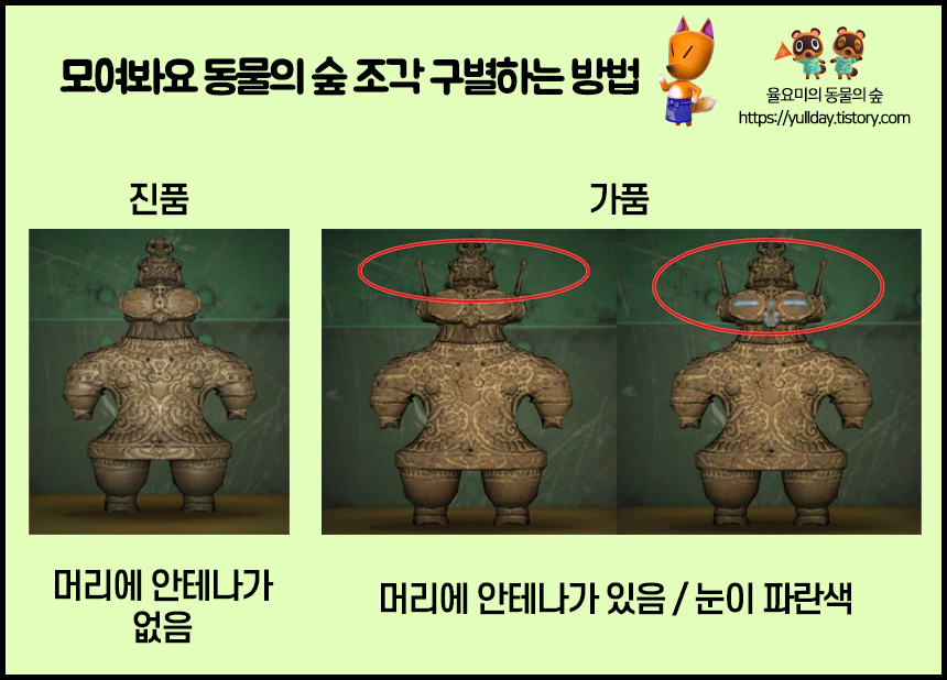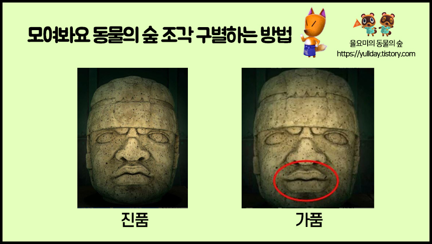 모여봐요 동물의 숲 공략 _ 모동숲 미술품 여욱 마켓, 조각상 진품/가품 구별하는 방법 본문