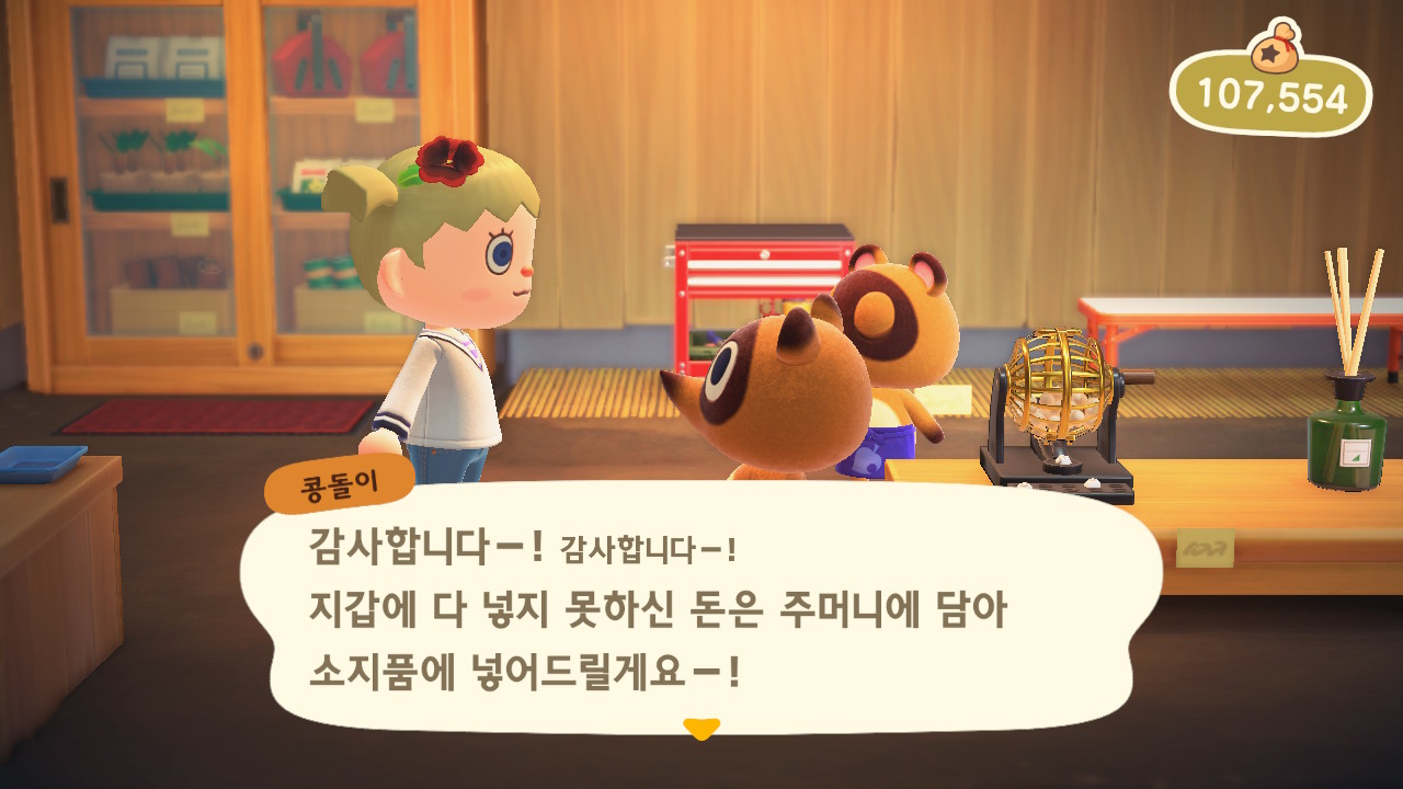 [증축 전] 너굴의 진행으로 튜토리얼이 진행됨. 마이 홈 증축/DIY/ATM 기능/너구리 쇼핑
