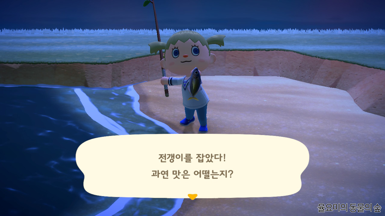 이건 그냥 심심해서 바다에서 잡은 전갱이. 저 익숙한 "과연 맛은 어떨는지?"라는 멘트. 튀어나와요 동물의 숲에서도 자주 보던 멘트인데 괜히 반갑다.