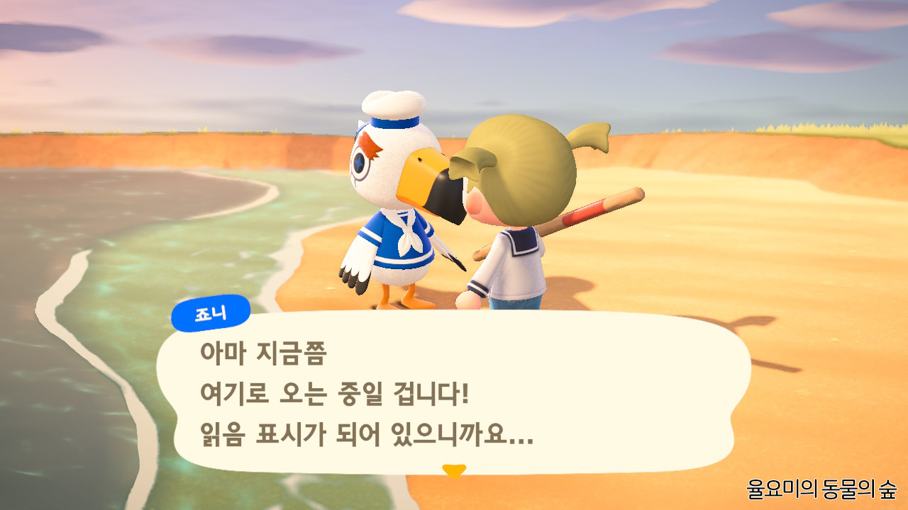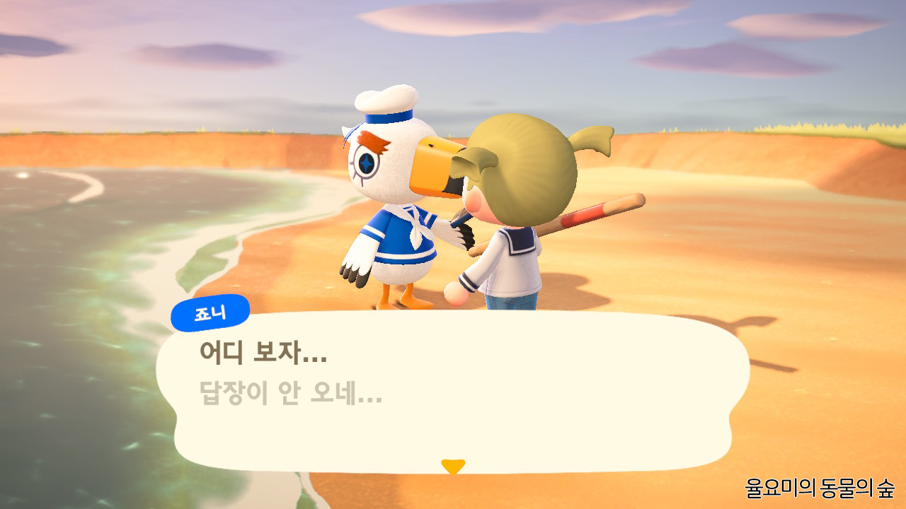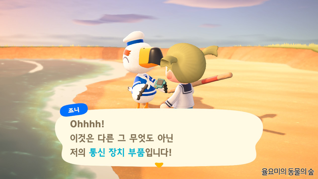 내가 생각했을 땐 읽고도 답장이 안 오는 것 같은.... 아니지 죠니? 무사히 잘 돌아가길 바라 죠니..! 어찌 됐든 모여봐요 동물의 숲에서 죠니와의 만남은 재밌는 에피소드인 듯하다. 통신 장치 부품 찾아주는 거 전혀 어렵지 않으니까 우리 섬에 자주 놀러 와 줘 죠니!