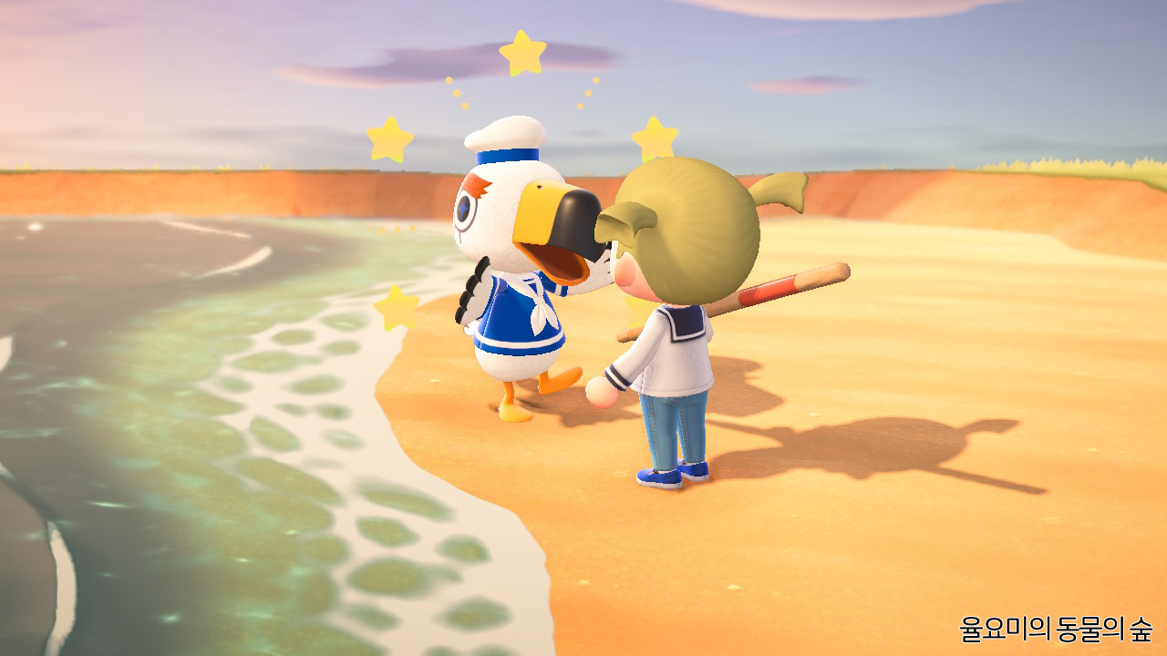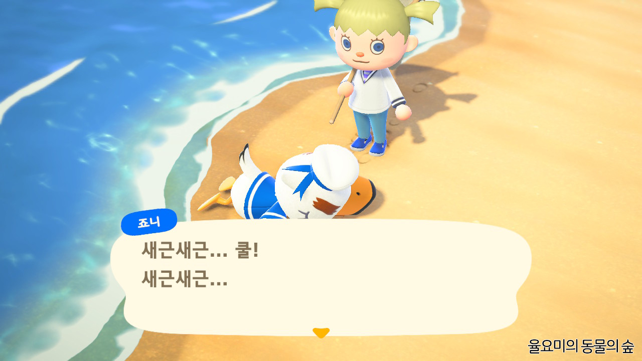 여느 때와 다름없이 시작한 모여봐요 동물의 숲! 시작하자마자 해변가에서 보이는 갈매기 녀석(?).