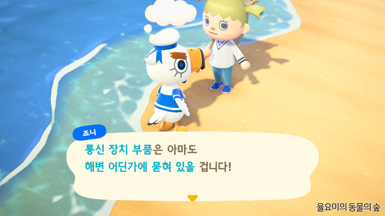 죠니의 통신 장치 부품을 찾는 방법은 쉽다. 다만 해변을 여기저기 돌아다녀야 하는 건 조금 귀찮긴 하다.